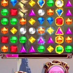 Bejeweled LIVE’s game play starts with the classic 8×8 grid of colored jewels. Your goal is to line up three or more of a kind by moving gems horizontally or vertically in order to make a match. Match three jewels and they disappear, leaving the jewels above them to fall into place. Match 4 or more jewels and they also disappear, but leave behind one special jewel which can be combined in a later move to do things such has create large explosions.